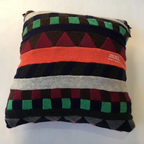 brand SHINYA NOMOTO ビンテージ カシミア100%セーターから各色各パーツをカットし1パーツ1パーツ縫い合わせるパッチワーククッションカバー。表裏 色違いのフェアアイル柄です。 ボタンもセーターのリブを使ったくるみタイプ。 サイズ 43cm x 43cm material 表地 Cashmere wool 100% Hand mede by Shinya Nomoto