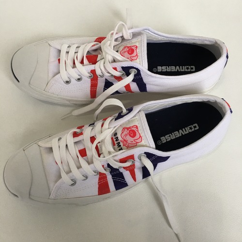 Brand SNMT Detail 映画 QUADROPHNIA さらば青春の光 60年代英国モッズ映画をイメージにユニオンジャックを表現しました。 ジャックパーセルに1点1点染料ハンドプリントをしています。ペンキ、顔料プリントとは違い 生地を染めていますので洗うごとに馴染み 雰囲気が良くなっていきます。 多少のにじみ等あります。 ハンドプリントの為、同じプリントのスニーカーはありません。 *使用の染料材料が生産終了の為、在庫限りになります。