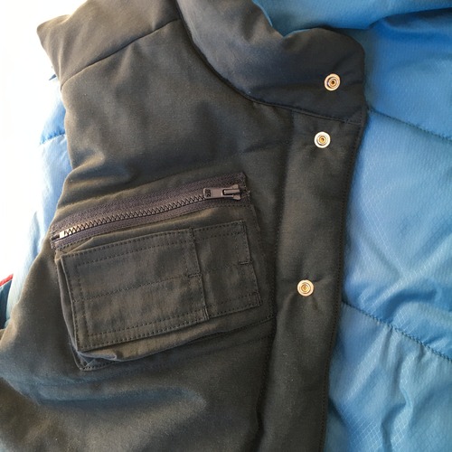 現存の少ない 1つのスリーピングバッグから最大4着分のBack body。世の中で1/4 そして同じ配置,ステッチのないOnly One Vestです。