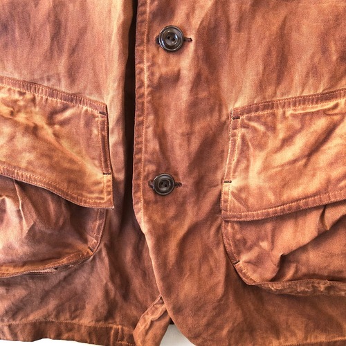 Brand bitter BROWN Detail 染職人さんにより一枚一枚、生成り色から何度も日光発色だけで染め重ねた濃い柿渋茶色です。着込むほど自分の体に馴染み柿渋色が変化していきます。本物の柿渋染めを堪能してください。 ウエストポケットが立体的にふらしたデザインに。 サイズ 2 3 身幅 54 57 着丈 74 76.5 裄丈 84 87 material cotton 100% made in japan