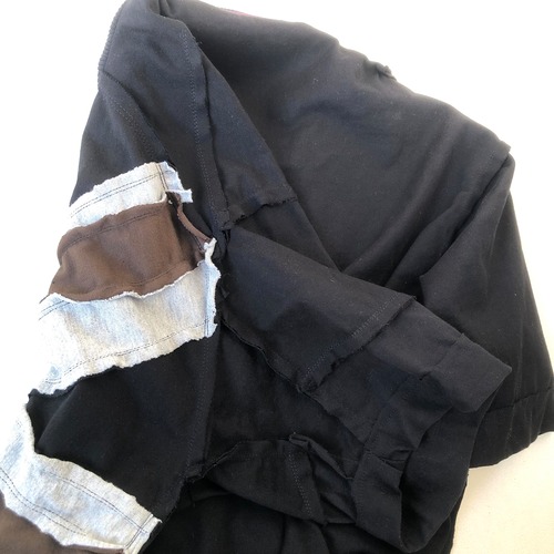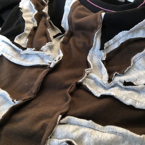 31パーツで構成される左右非対称のユニオンジャックPatchwork。All ダブルステッチ フリー感覚縫製で繋がっていく切りっぱなしパーツ群。